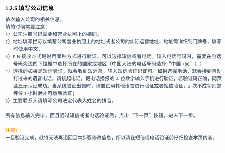 2)注册过程中有些步骤不可逆,无法返回修改,请您认真检查所填信息,无误后再下一步。