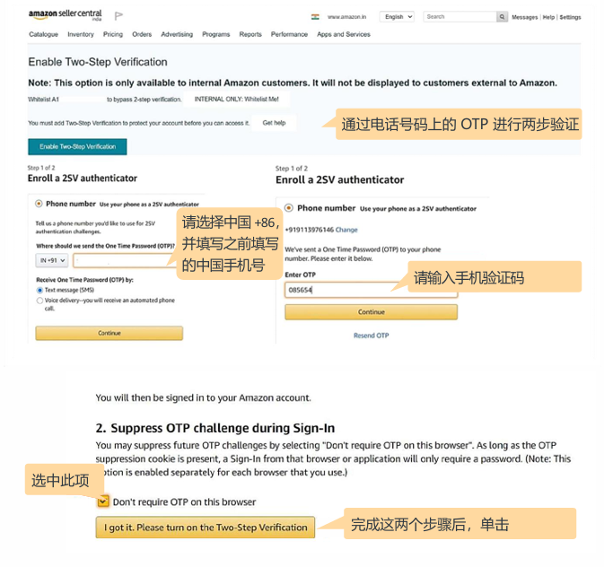 要登入卖家中心,您需要先通过电话号码上的 OTP 进行两步验证。