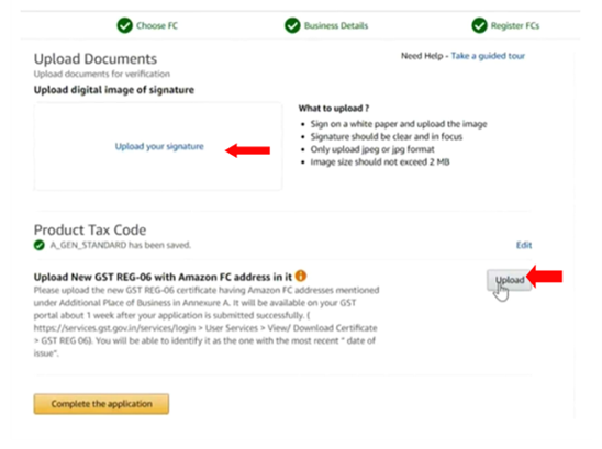 上传运营商法人数字签名及 GST 文件,点击“complete the application 完成申请”。亚马逊会花 2-3 个工作日的时间来查看你的卖家账户,在你的账户准备好上线后提供详细信息。