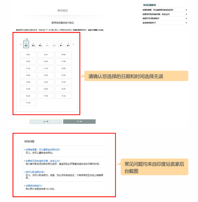 请选择一个日期和时间,并单击“下一步”确认您的视频通话验证预约。