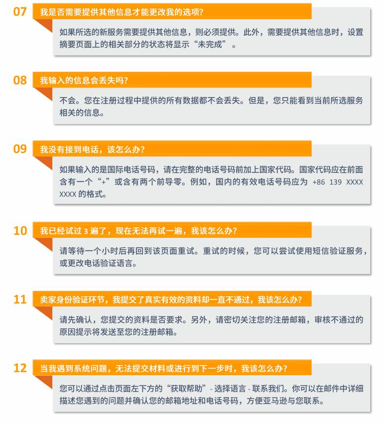 您使用的企业名称必须能准确标识您的企业;章提供最准确且最新的营业地址、电子邮箱和电话号码,以便亚马逊在必要时与您联系。